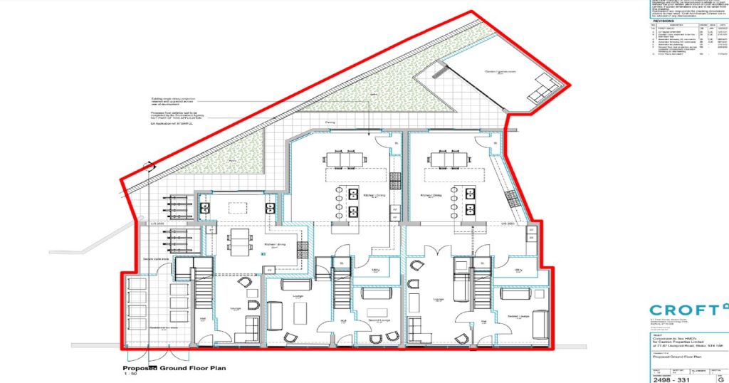 Planning Permission: We successfully obtained planning permission to reconfigure 6 adjoining dilapidated mix use terraces. The undertaking involves transforming these properties into three 8-bedroom Houses in Multiple Occupation (HMOs). This includes installing a new roof with a rear dormer for an additional floor, adding a single-story rear extension, making elevational alterations, and replacing the existing outbuilding.